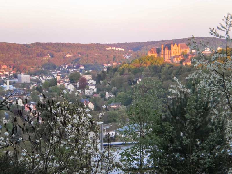 Bildrechte: Ludwig Sebastian Micheler, Marburger Schloss und Innenstadt im Lahntal im Frühling von Emil-von-Behring Pavillon (Elsenhöhe Marburg) am 5. Mai 2016, CC BY-SA 4.0